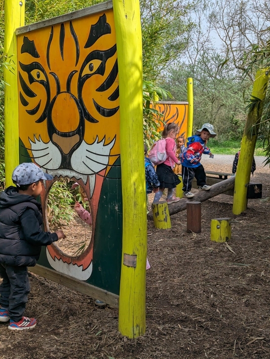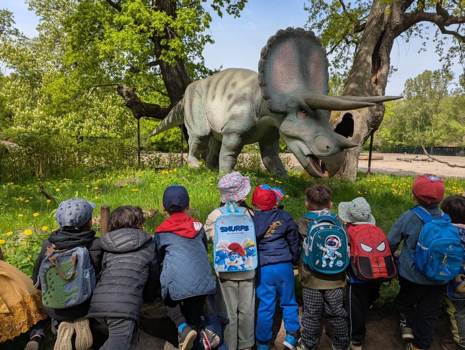 Auch die bereits ausgestorbenen Tiere waren interessant. Der Tierpark bietet neben den Tieren auch viel Bewegungsfläche für die Kinder und einen schönen Spielplatz. Als Unterstützung an diesem sonnigen Tag kamen auch einige Eltern mit, die der Gruppe einen spannenden Tag ermöglichten.