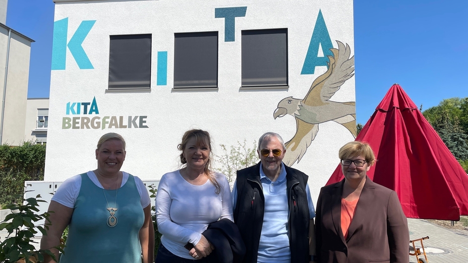 Die Kita Bergfalke feiert ihre Fertigstellung, und die ersten Gratulanten machten sich ein Bild von der gelungenen Gestaltung.