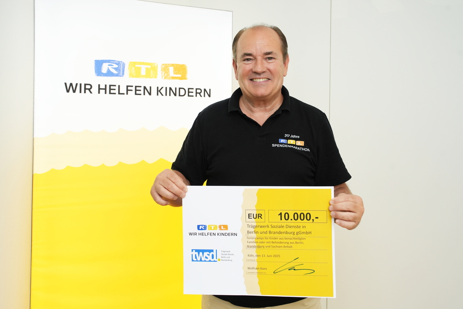 Wolfram Kons, Gesamtleiter der RTL Charity und Leiter des RTL Spendenmarathons, überreichte feierlich den Spendenscheck.