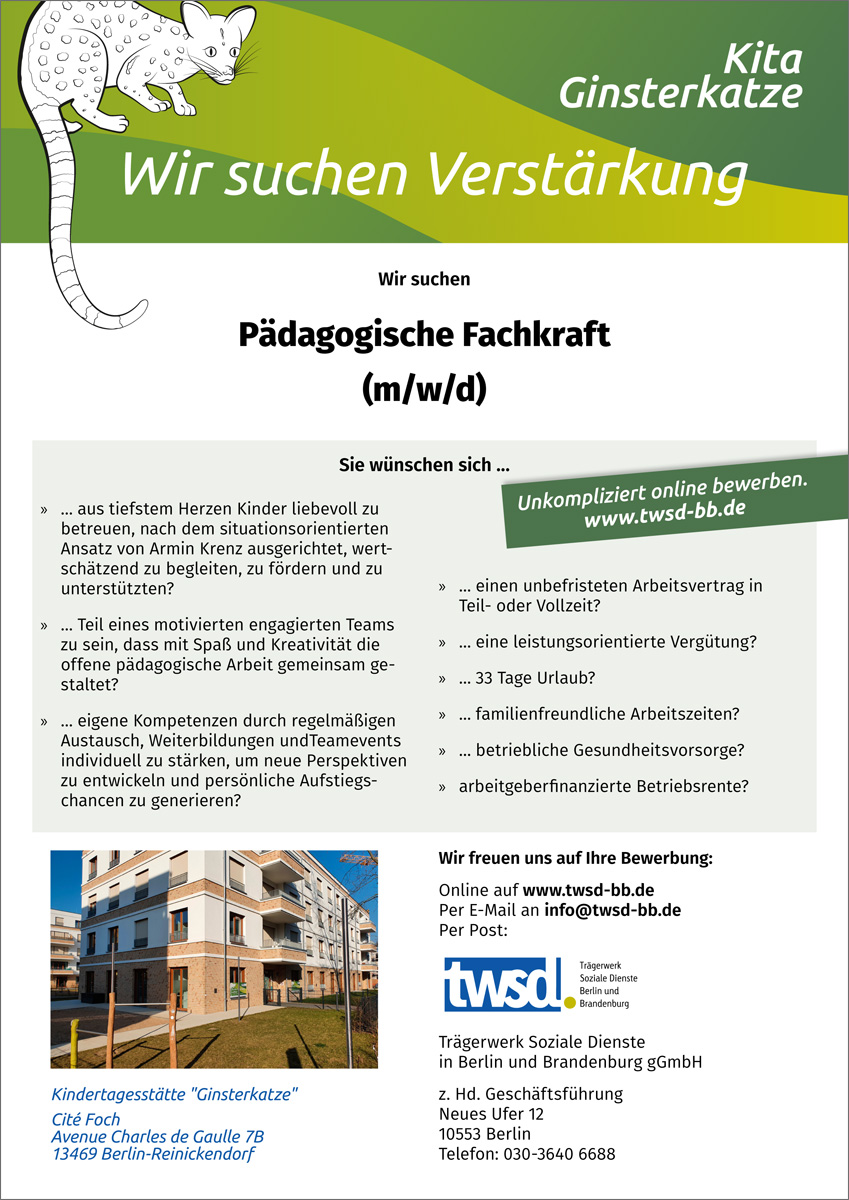 Unsere Kita Ginsterkatze in Berlin-Reinickendorf hat erfolgreich an einem Plakatwettbewerb teilgenommen.