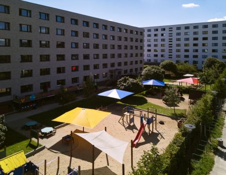 Dank der finanziellen Unterstützung der DKLB-Stiftung und des Paritätischen Wohlfahrtsverbandes LV Berlin können sich die Kinder unserer Kita über fünf große festinstallierte Allwetterschirme im Gart…