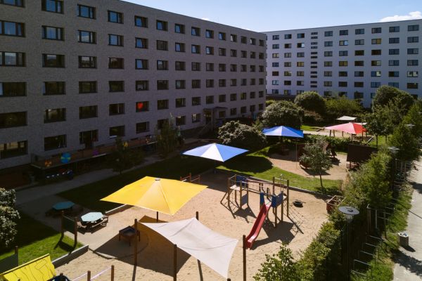 Dank der finanziellen Unterstützung der DKLB-Stiftung und des Paritätischen Wohlfahrtsverbandes LV Berlin können sich die Kinder unserer Kita über fünf große festinstallierte Allwetterschirme im Garten freuen.