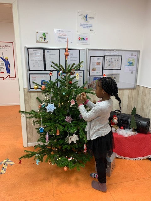 Die Adventszeit, wie wir sie mit den Kindern gestalten, ist so schön, geheimnisvoll und voller Fantasie. Sie bedeutet auch das Spiel mit den Sinnen. Es gibt viel zu schauen, hören, riechen, schmecken, fühlen… In dieser Woche halfen die Kinder tatkräftig dabei, einen frischen Weihnachtsbaum für die Kita herbeizuschaffen, und schmückten ihn in freudig aufgeregter Stimmung. Zugleich zog an mehreren Tagen der Duft von leckeren Plätzchen durchs Haus. Viele kleine Hände waren damit beschäftigt, aus dem Teig Sterne und Herzen zu formen. Natürlich durfte im Anschluss an das Backen verkostet werden.