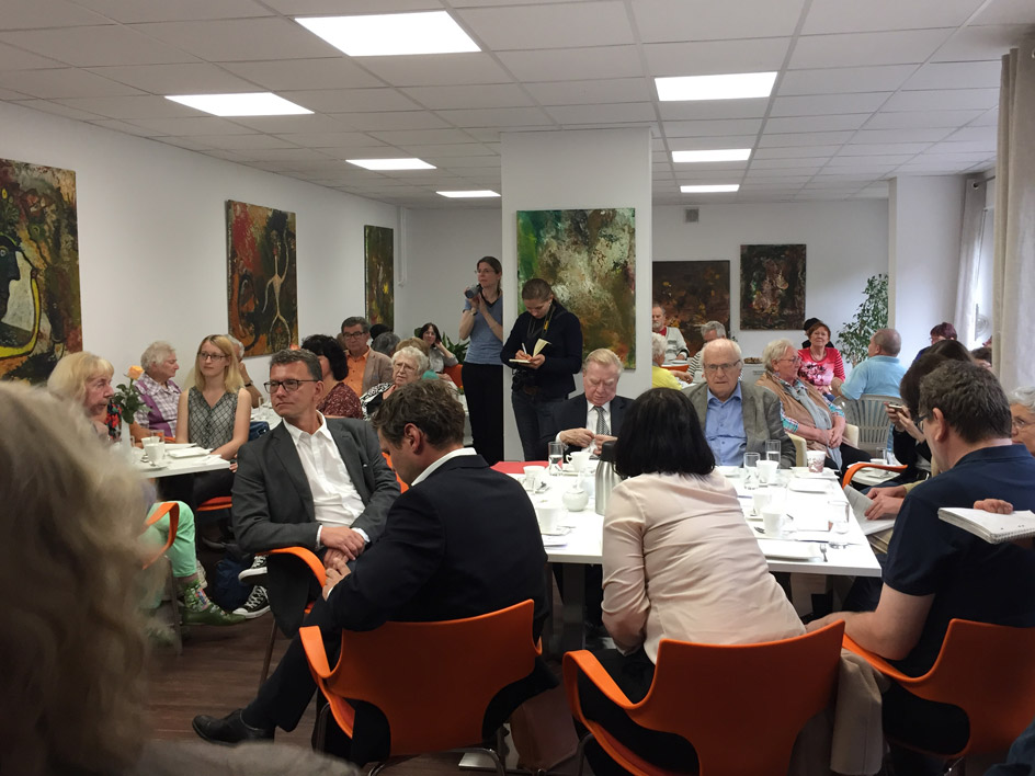 Zahlreiche Bewohnerinnen und Bewohner des Hauses Celsiusstraße 13 und aus der Nachbarschaft folgten unserer Einladung zur feierlichen Eröffnung am 12. Juli 2017 bei Kaffee, Kuchen, Musik und Festansprachen der Initiatoren und Förderer des Projekts.